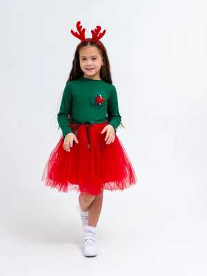 Нарядное платья с новогодней брошью в виде елочки и звезы. В наличии размеры 110, 116, 122 см.