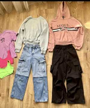 Sela джинсы и карго в идеальном состоянии, розовая кофта в идеале, остальное подарок.
