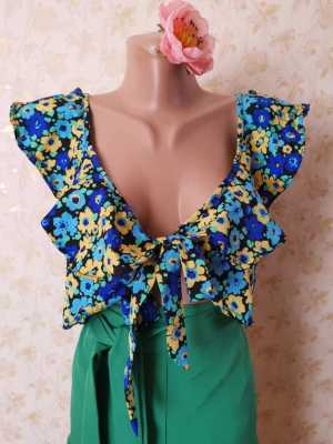 Воздушная яркая накидка в цветочный принт от BooHoo Завязывается спереди на ленты.