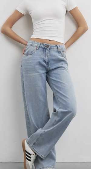 Новые джинсы, размер 42-44, широкие от бедра, низкая посадка, приятный голубой цвет. Брала за 4.300 в магазине (оригинал).