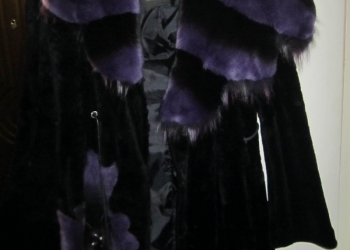 Продаю натуральную шубу из испанской козочки, воротник песец, цвет черный бриллиант, размер 44-48, длина 92 см, рукав 65 см.