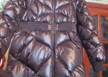 Новый, пару раз "выгуляла",красивый, блестяще черный ,капюшон с искусственным мехом ,размер английский 24. На мой рост 1.
