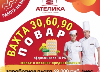 В сети отелей Управляющей компании "Ателика" открыта вакансия ПОВАР-УНИВЕРСАЛ, с проживанием и питанием на сезон (вахта июнь...