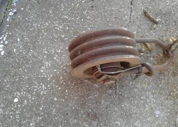 Продам блок полиспаст б/у производство СССР,три ролика.Полностью в рабочем состоянии.Диаметр 19 см,высота 30 см.