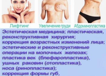 Круговая подтяжка лица, реконструкция груди после родов и мастэктомии, увеличение груди имплантами, абдоминопластика...