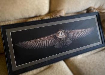 Картина «сова» Вышитая крестом Оформлена в багет и находится под стеклом антиблик Размер работы 85*18 без учета...