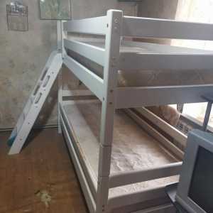 Продаётся в хорошем состоянии двухярусная кровать,натуральное дерево, 18000р вместе с двумя ортопедическими матрасами.