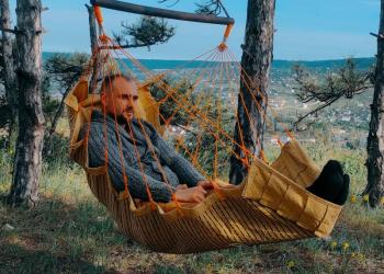 Кресло-гамак подвесной, трёхслойный поролон вшит в районе головы (подушка).