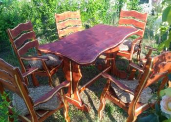 Продам новый комплект деревянной мебели для беседки, дачи, бани. В комплекте стол и 6 кресел с подлокотниками.