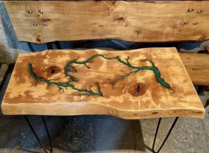 Столик в прихожую. Материал столешницы : слэб ольхи. Основание столика : железные ножки. Покрыт лаком .