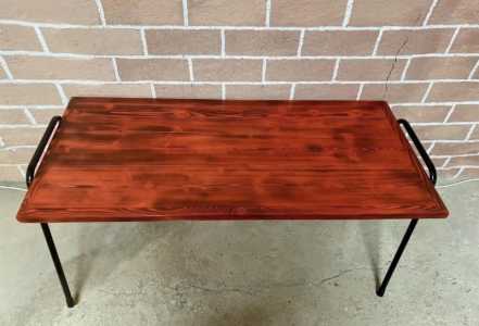 Материал столешницы: сосна. Основание стола : железные ножки. Стол очень легкий .