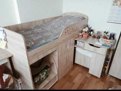 Продам кровать чердак. Спальное место 180/70. Много ящиков, лестница и стол вакантные на колесах.