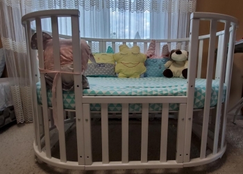 Продам детскую кровать трансформер 6 в 1 ! В отличном состоянии ! С матрасами овал и круг Бортики подушки,балдахин ,одеяло...