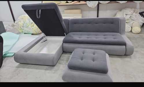Диван угловой, есть 2 отделения под белье или одежду. При желании можно перетянуть другим материалом.