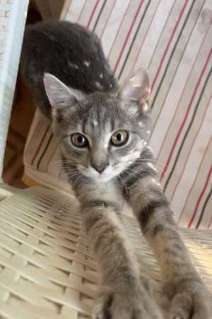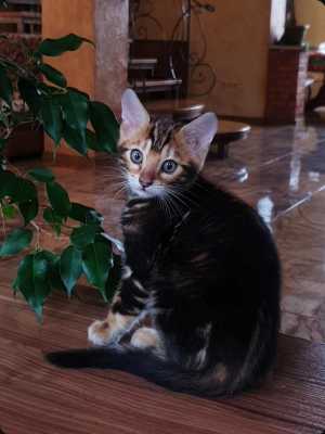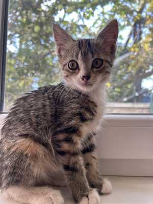 Очень ласковая,игривая и умная кошечка. Ей около 4-х месяцев. К лотку приучена