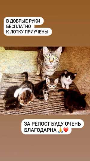 Котята в добрые руки Отдаю котят в хорошие руки! ------------------------------------- Нужно срочно их пристроить...