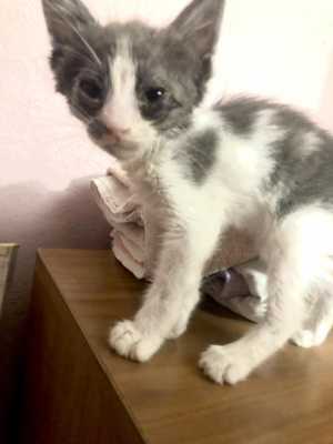 Вислоухая красивая кошечка, примерно месяц от роду, ласковая, домашняя, идёт в руки к людям, потеряла хозяев и ищет новый...